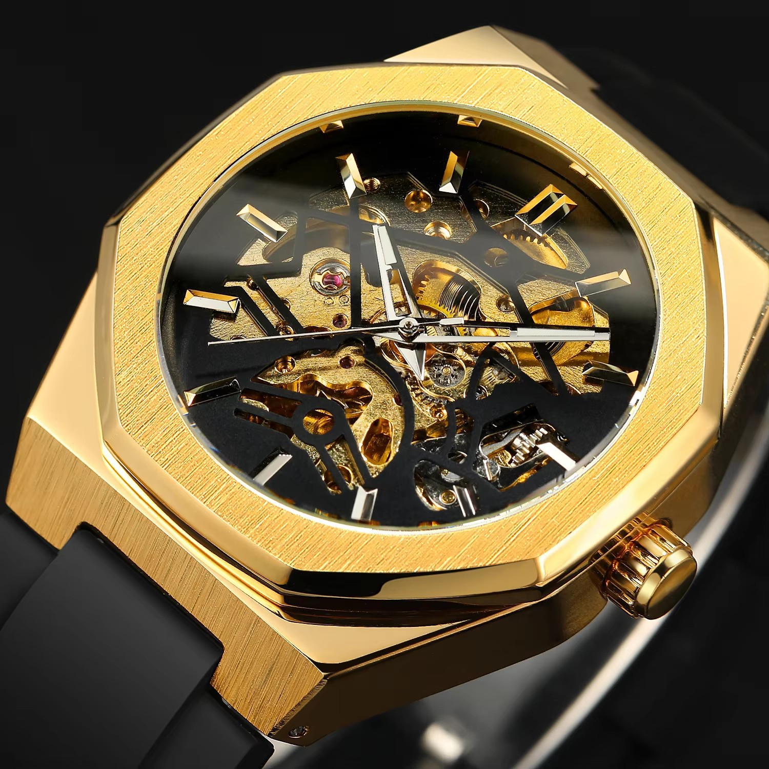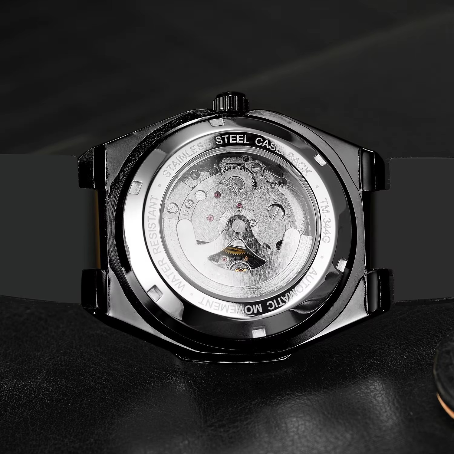 Color: gold case with black dial, black case with black dial and gold movement, black case with black dial and silver movement, silver case with black dial, silver case with white dial