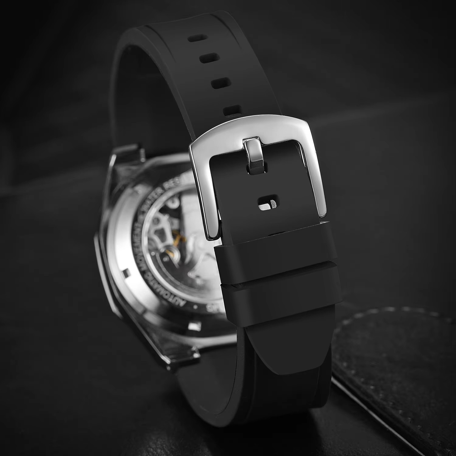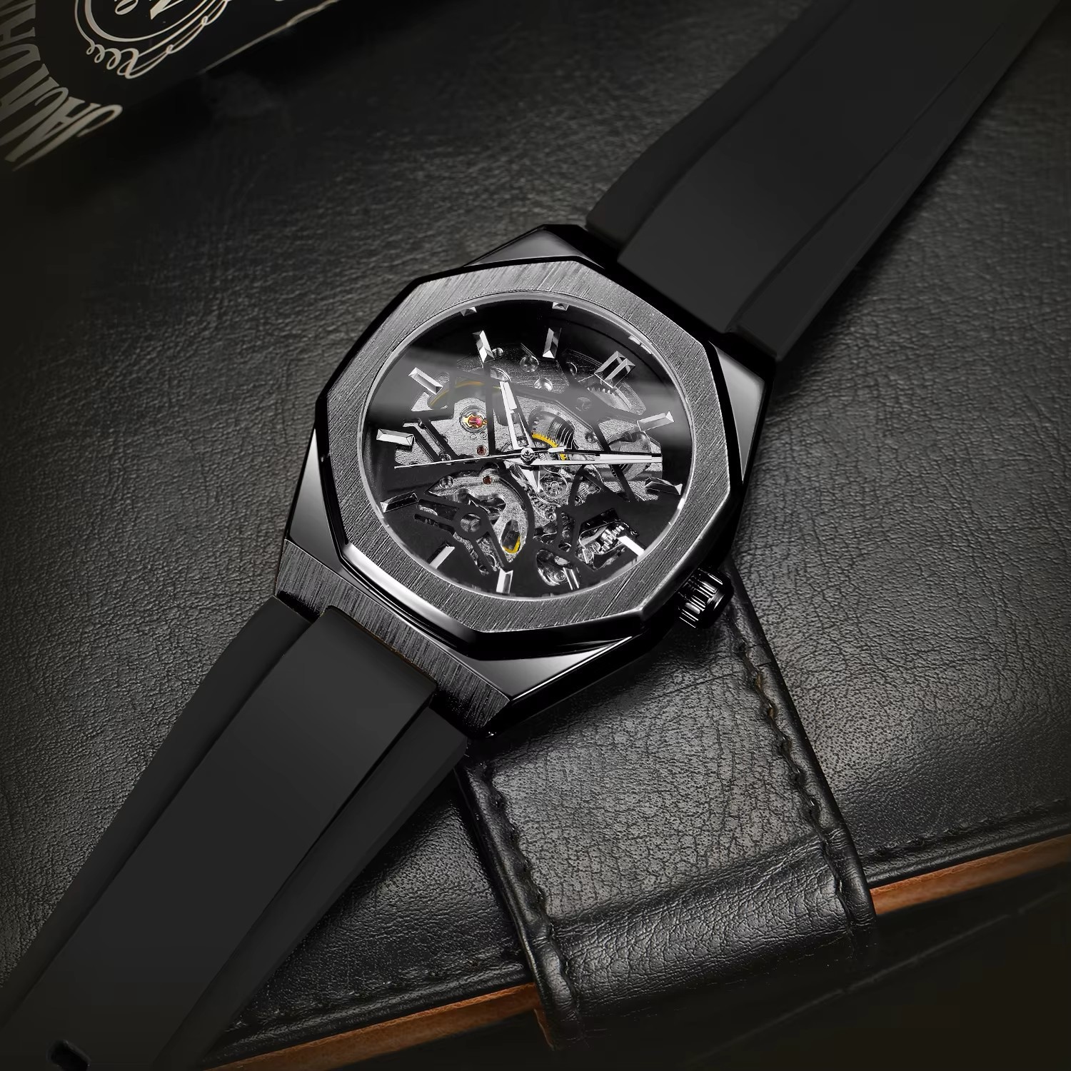Casual Silver Hollow Skeleton Rubber-band Automatic Mechanical Watch