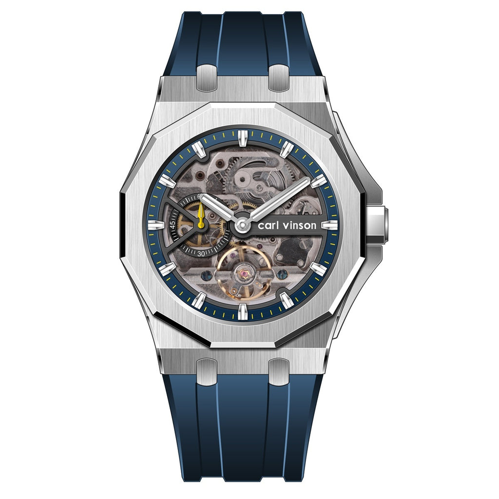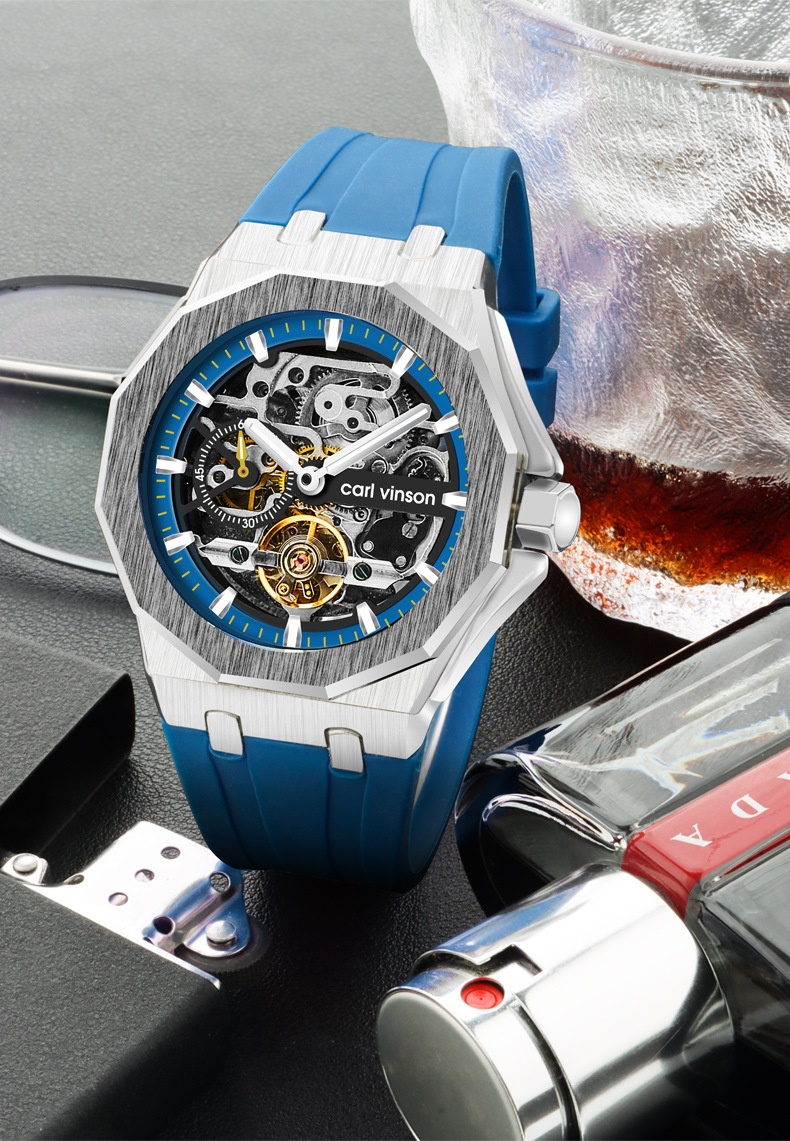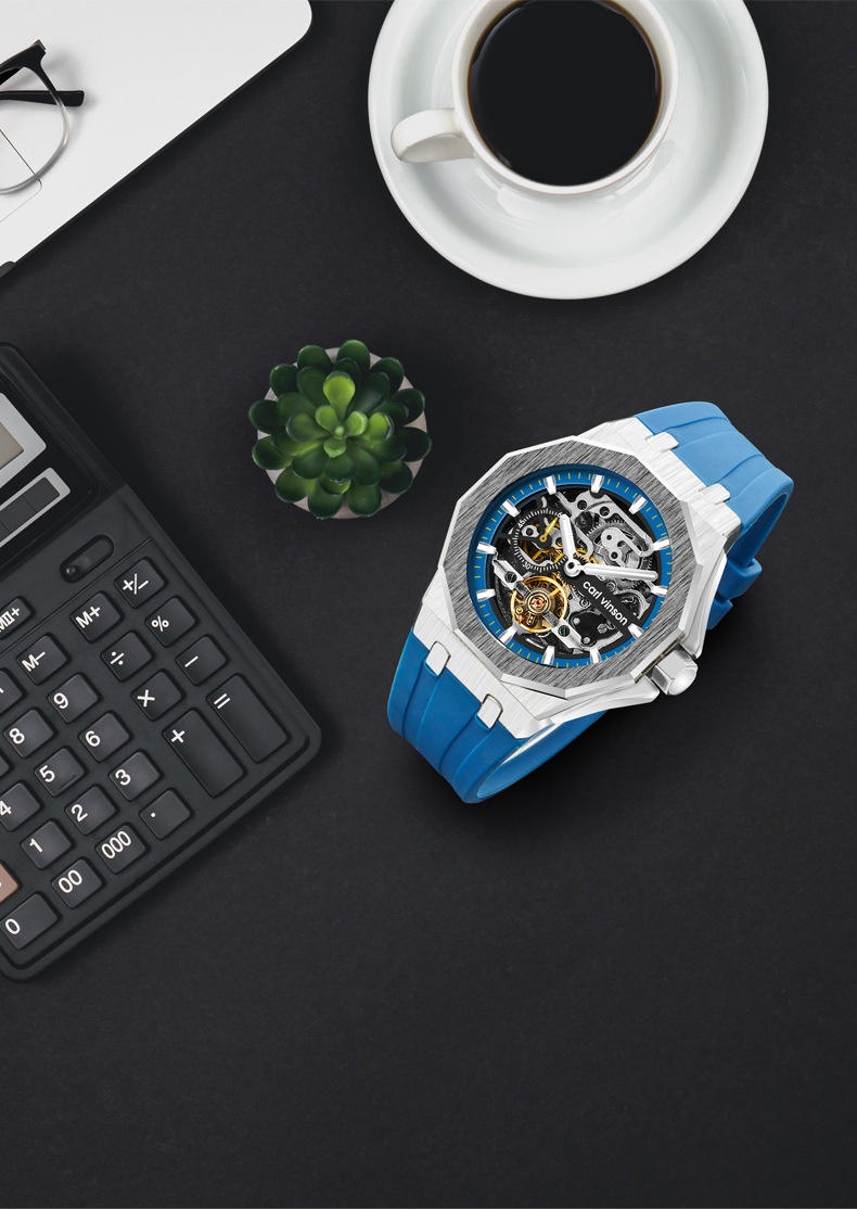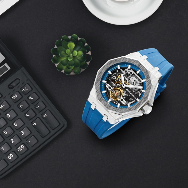 Fully Automatic Luminous Decorative Hollow Silicone-Strap Mechanical Alloy Watch