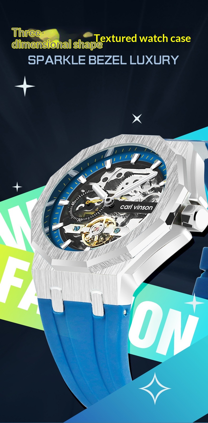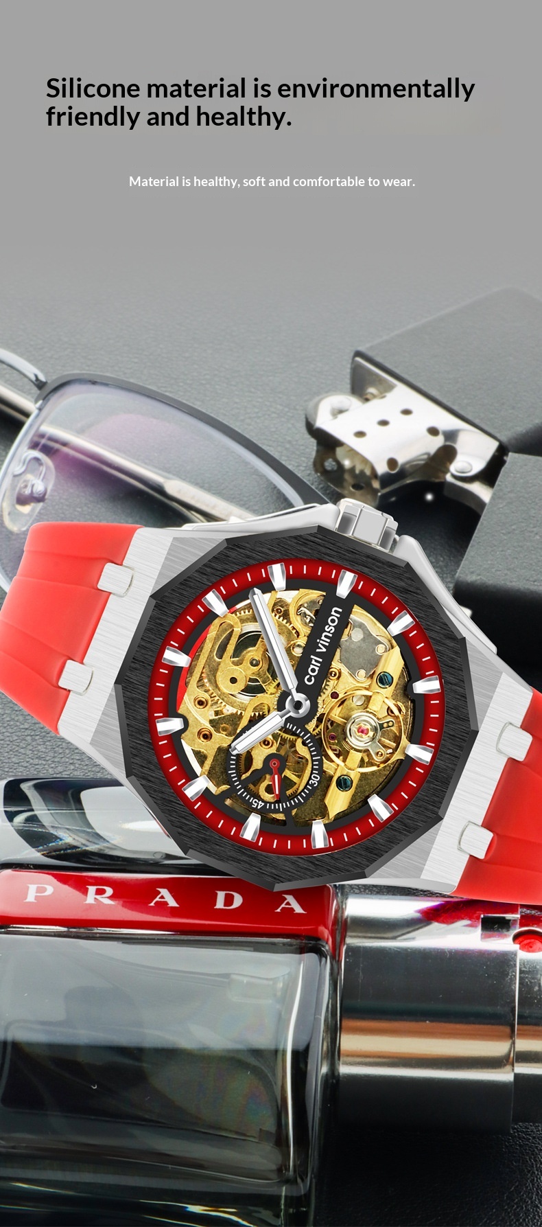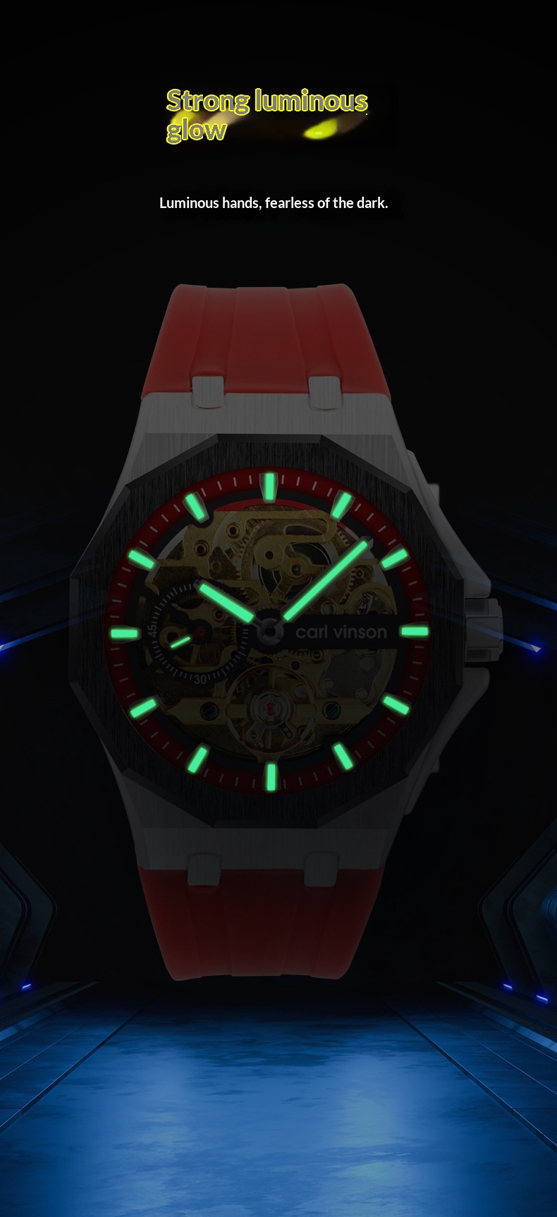 Fully Automatic Luminous Decorative Hollow Silicone-Strap Mechanical Alloy Watch